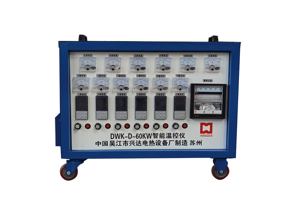 便攜式智能溫控儀 概述:便攜式智能溫控儀總功率60kw分6路構成,每路可單獨工作,每路額定功率為10kw,每路可同時驅動1塊10kw加熱器,配有6點自動有紙記錄儀,可實時記錄曲線,溫度表采用可編程控制器,該控制器采用模糊控制算法或自適應控制,可根據具體現場環境,設備穩定性,可自由變成為4斜坡/保溫×2曲線或8斜坡×1曲線。 輸入電壓:380V 輸出電壓:220V 控溫范圍0-1000℃? 可以任意設定升降溫的速率,控制精度誤差≤1%。